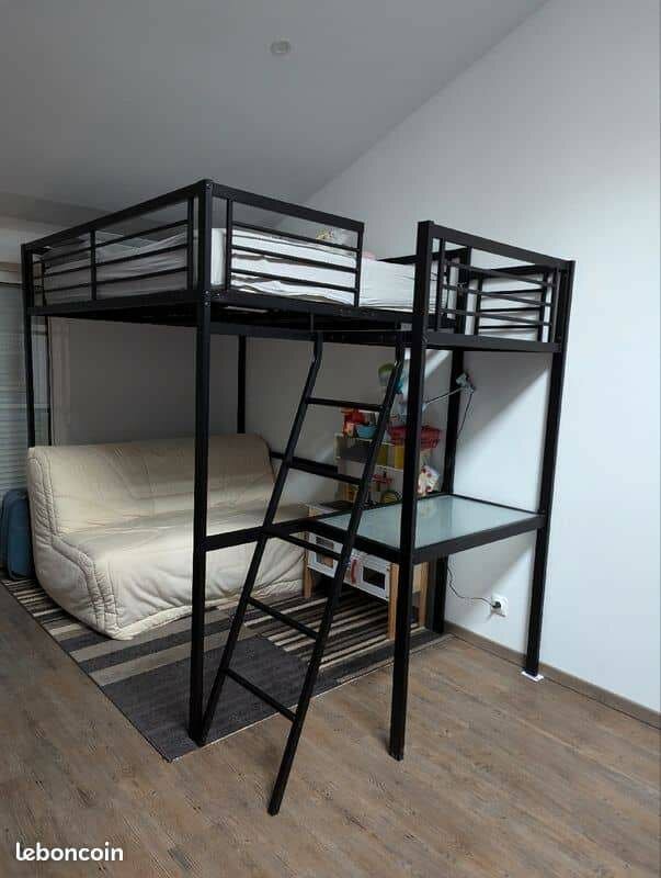 Optimisez votre espace avec ce lit mezzanine moderne en métal, doté d'un bureau intégré. Parfait pour les chambres d'adolescents ou les petits appartements. Conception robuste et élégante pour une solution de couchage et de travail tout-en-un.