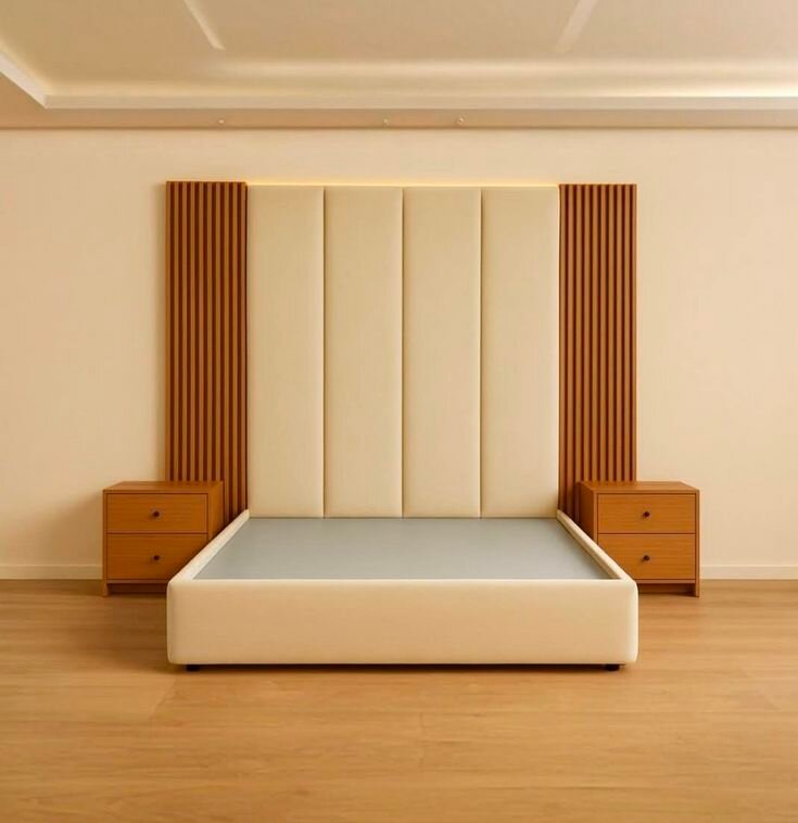 Lit en bois avec tête de lit capitonnée