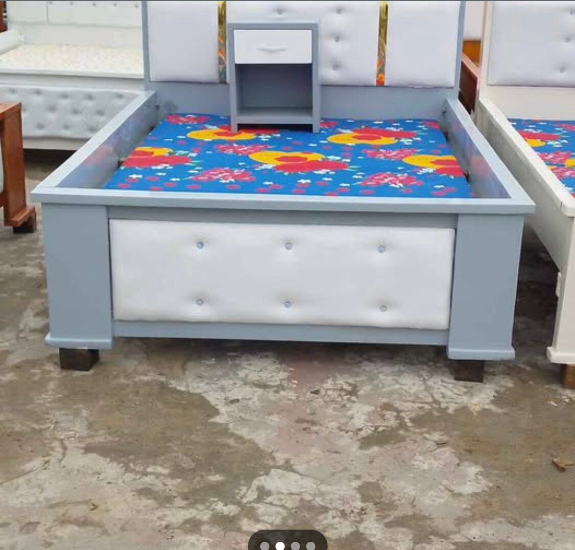 Lit moderne gris avec rangement intégré. Idéal pour une chambre élégante, offre confort et style avec une tête de lit rembourrée. Parfait pour optimiser l'espace et ajouter une touche contemporaine à votre intérieur.