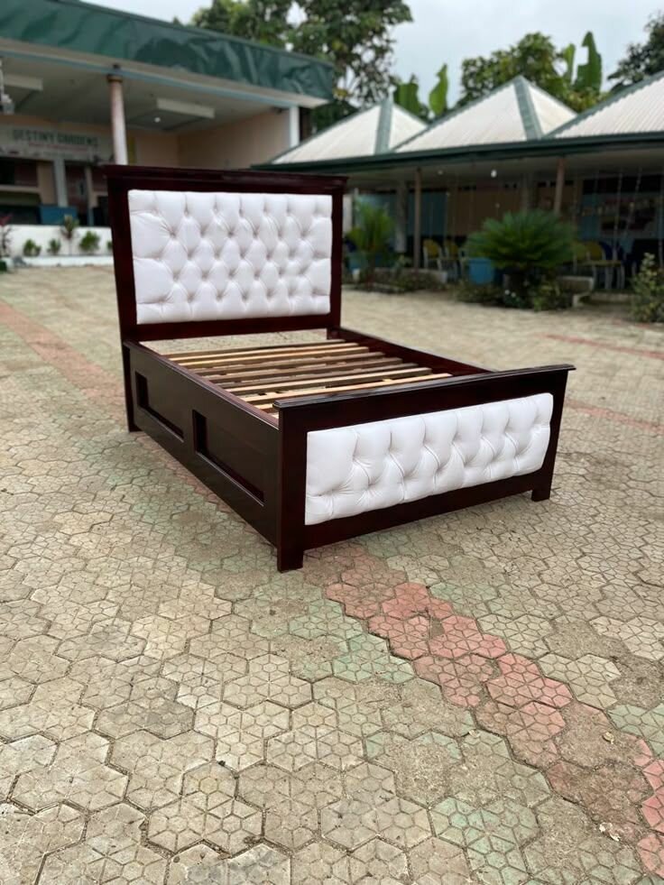 Lit moderne en bois avec tête de lit et pied de lit capitonnés. Conçu pour un confort optimal, ce lit est idéal pour une chambre à coucher élégante. Fabriqué en bois de haute qualité, il offre une durabilité exceptionnelle.