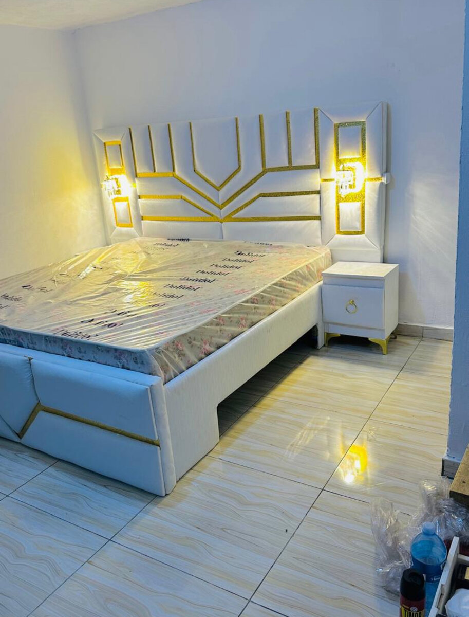 Transformez votre chambre avec ce lit moderne en cuir blanc. Design élégant et épuré, idéal pour une ambiance luxueuse. Comprend un matelas confortable pour des nuits de sommeil paisibles. Parfait pour toute chambre chic et contemporaine.