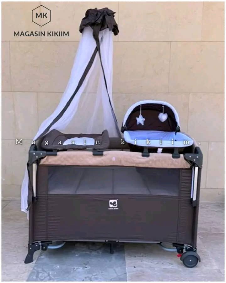Lit parc pour bébé élégant avec baldaquin, parfait pour assurer confort et sécurité. Design moderne et fonctionnel, idéal pour la chambre d'enfant.