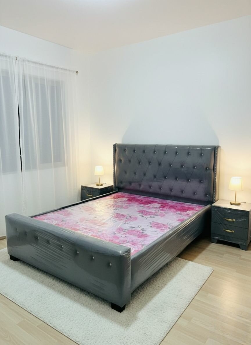Lit 3 places capitonné avec tête de lit rembourrée, moderne et confortable. Prix : 170 000 FCFA. Contactez-nous pour plus d'informations : 07 97 96 90 69