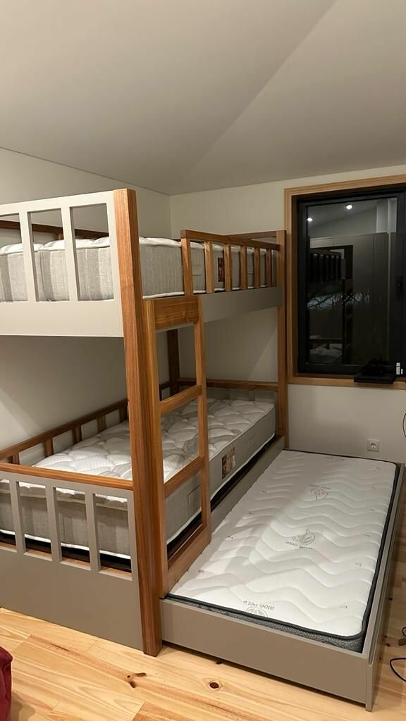 Profitez d'un espace optimisé avec ce lit superposé triple en bois robuste. Idéal pour les familles nombreuses ou les chambres d'enfants, il offre sécurité et confort avec ses balustrades protectrices. Le design moderne et fonctionnel s'intègre parfaitement dans tout intérieur. Un choix intelligent pour maximiser l'espace et garantir des nuits paisibles pour tous.
