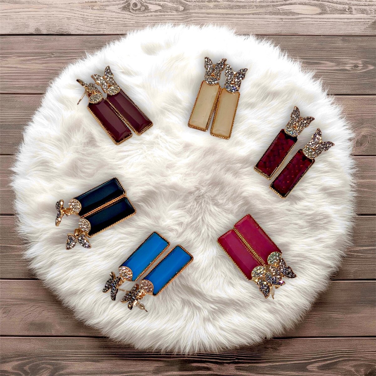 "Spread your wings with these stunning long stud butterfly earrings, perfectly capturing the beauty of nature. Delicate details and intricate design make these earrings a standout piece in any jewelry collection.