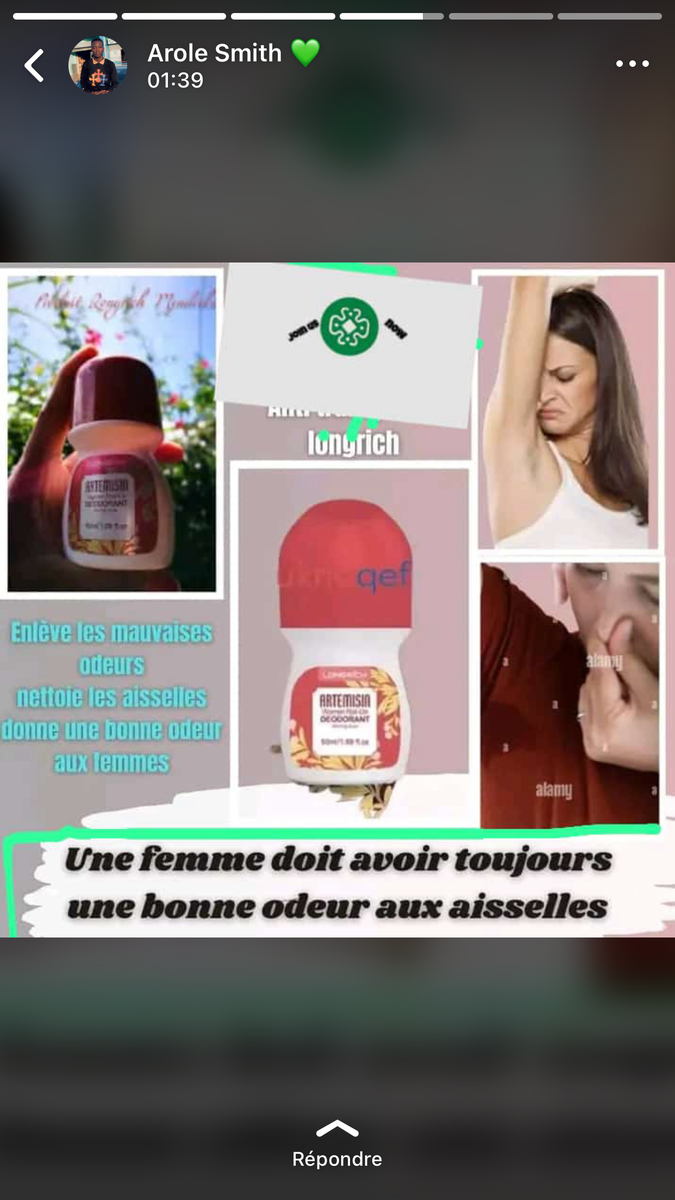 Découvrez le déodorant antitranspirant Longrich, idéal pour une fraîcheur quotidienne. Élimine les odeurs de transpiration, prévient les démangeaisons et laisse votre peau douce. Convient à toutes les femmes recherchant confort et efficacité. Léger, non collant et sans traces.