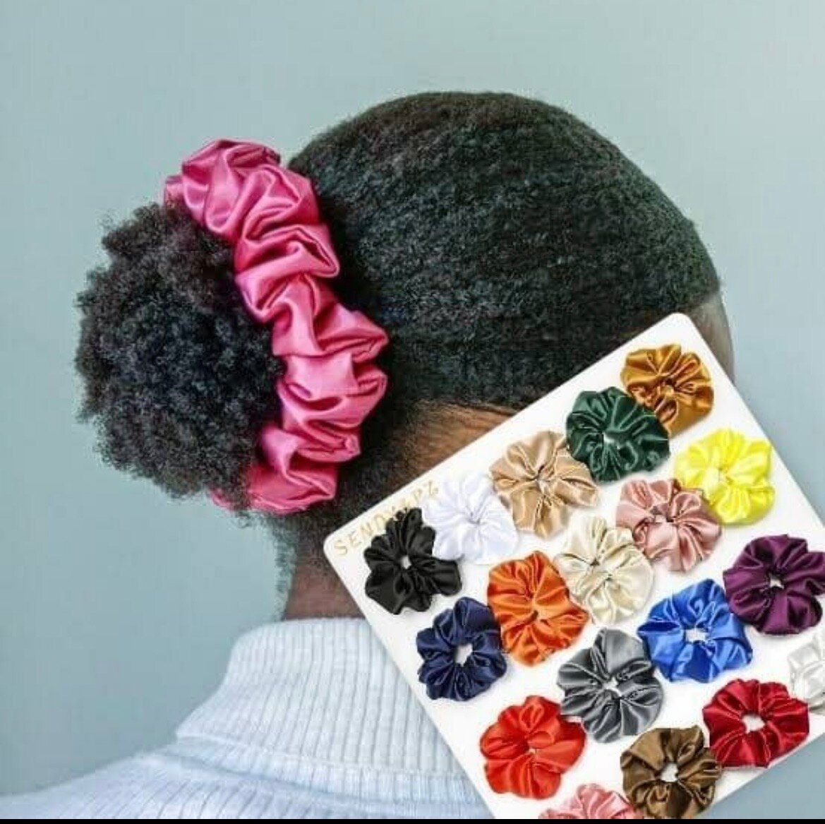 Ensemble de chouchous en satin brillants, idéal pour toutes les coiffures. Doux pour les cheveux, évitent les cassures et ajoutent une touche d'élégance. Parfaits pour un usage quotidien ou pour compléter des tenues de soirée.