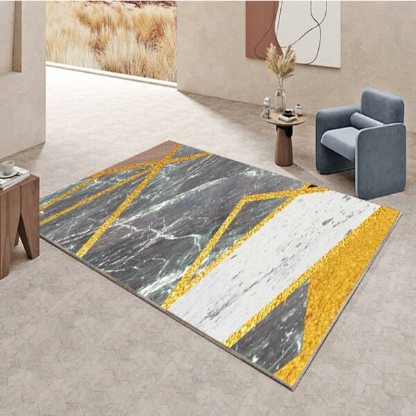Tapis de salon imprimé 3d couleur de gris blanc et dore