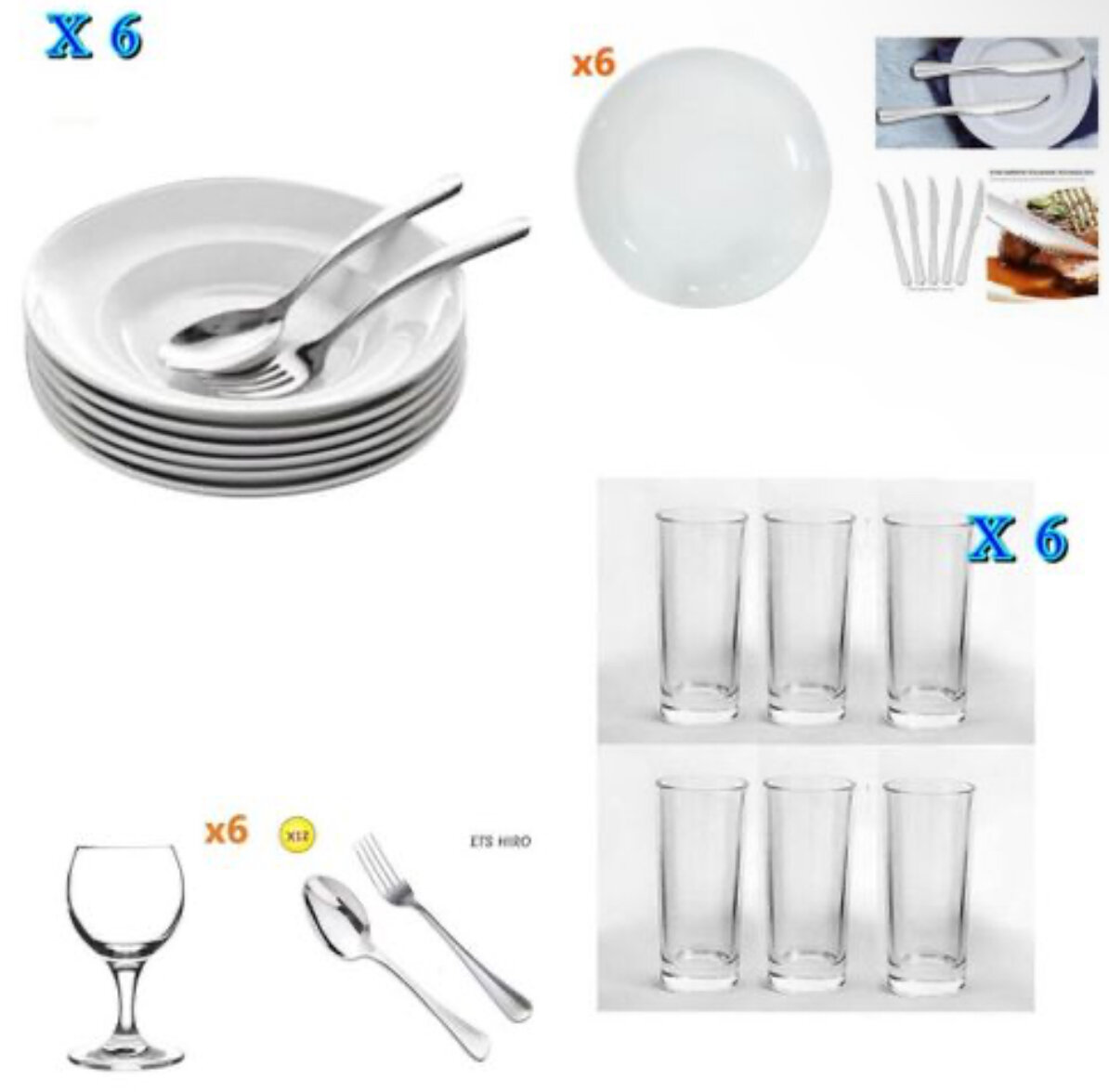 Quantité : 6 Assiettes, 6 Cuillères et 6 Fourchettes