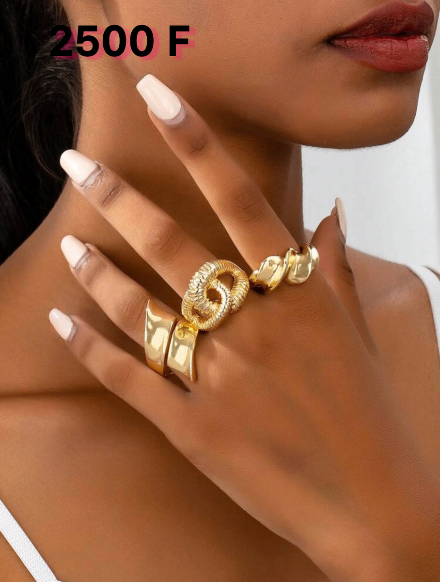 Transformez votre style avec ce lot de 3 bagues dorées élégantes. Leur design unique ajoute une touche de sophistication à chaque tenue. Parfait pour les soirées ou un usage quotidien, ce set est un ajout indispensable à votre collection de bijoux. Exprimez votre individualité et brillez en toute occasion.