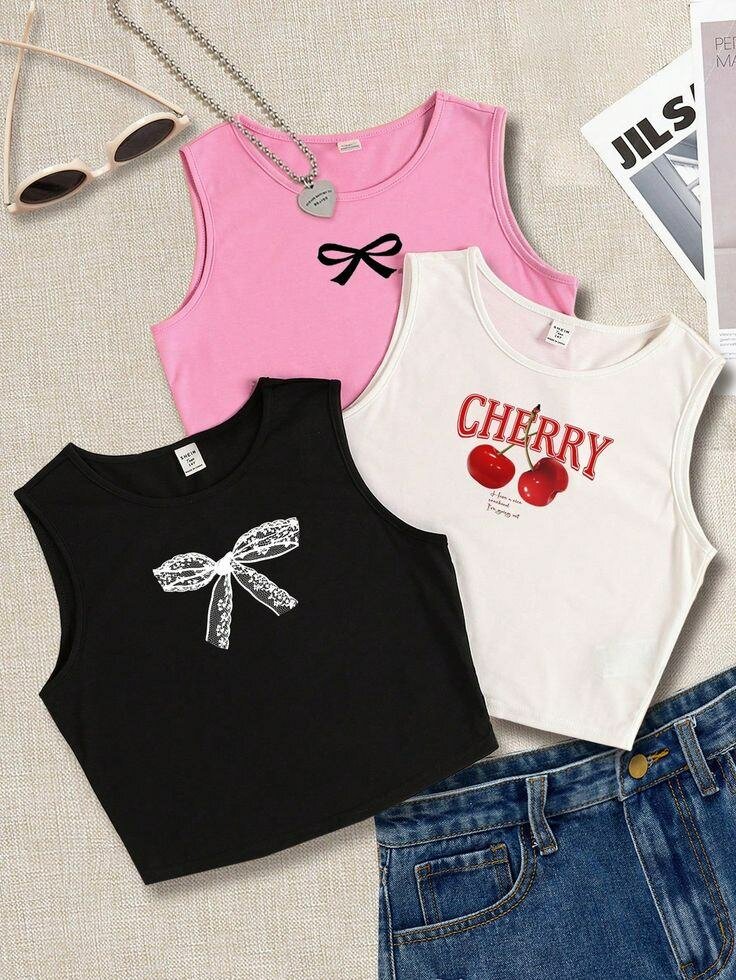 Ensemble de 3 débardeurs colorés avec motifs, parfait pour un look casual-chic. Idéal pour les sorties estivales et le quotidien.
