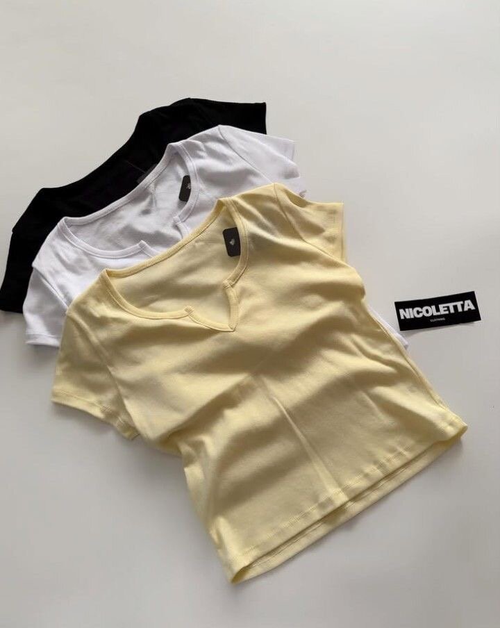 Ensemble de T-shirts basiques - jaune, blanc et noir. Confortables et polyvalents, parfaits pour un look décontracté ou pour superposer. Fabriqués en coton doux pour un port agréable toute la journée.