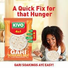 Découvrez le mélange Gari 4 en 1 KIVO, un produit parfait pour un repas nutritif et rapide. Riche en vitamine A et fer, ce mélange inclut Gari, lait, arachide et sucre. Idéal pour un petit-déjeuner énergisant ou un encas à tout moment. Facile à préparer, rapide et délicieux.