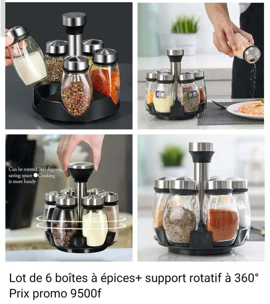 Lot de 6 boîtes à épices+ support rotatif à 360°