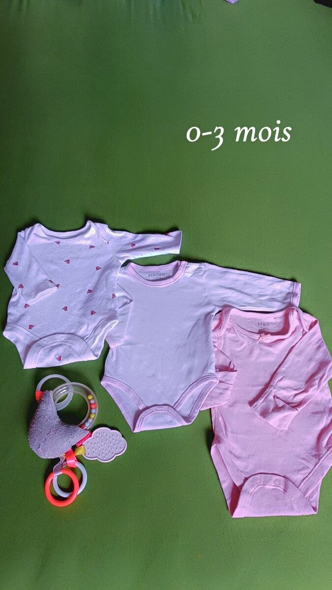 Ensemble de bodies en coton doux pour bébé. Comprend trois bodies à manches longues dans des tons roses, idéals pour garder votre bébé confortable. Parfait pour les nouveau-nés de 0 à 3 mois. Confort optimal pour la peau délicate de votre bébé.