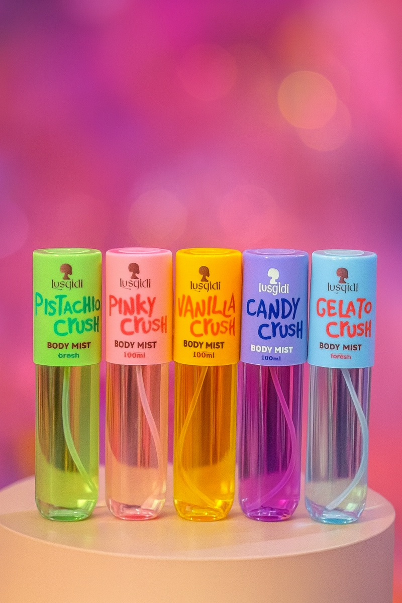 Ce lot de brumes corporelles offre une expérience sensorielle envoûtante avec des parfums de pistache, vanille, bonbon, sorbet, et fruits rouges. Idéales pour toutes occasions, ces fragrances rafraîchissantes et légères vous accompagnent toute la journée. Parfait pour les amateurs de parfums sucrés et gourmands, chaque flacon de 100 ml est un pur plaisir olfactif.