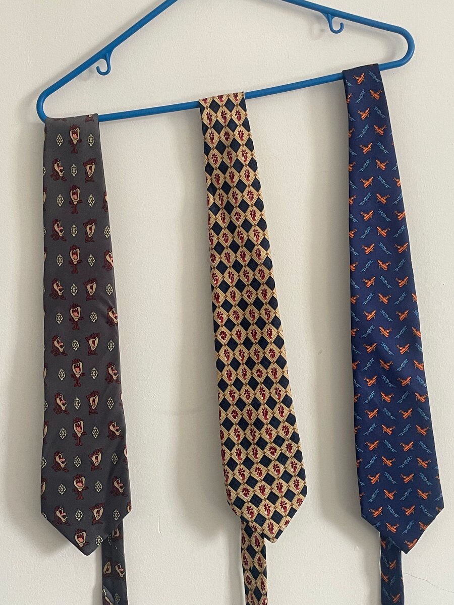 Découvrez notre lot de trois cravates vintage au design unique, parfaites pour ajouter une touche d'élégance à votre garde-robe. Idéales pour le travail ou les occasions spéciales, elles deviendront un incontournable de votre style. Fabriquées à partir de matériaux de qualité pour un confort optimal.