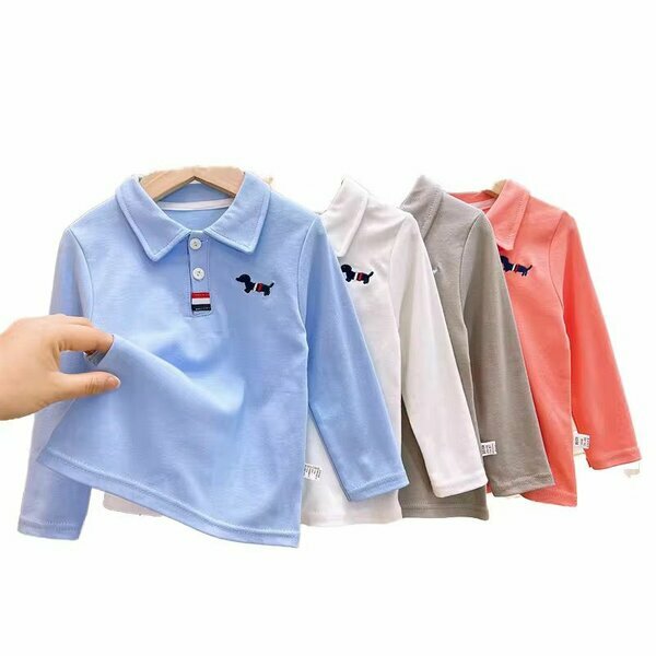 Lot de polos manches longues enfant, mixte, disponibles en bleu, blanc, gris et corail. Parfaits pour l'école, les sorties ou la vie quotidienne. Confortable et tendance.
