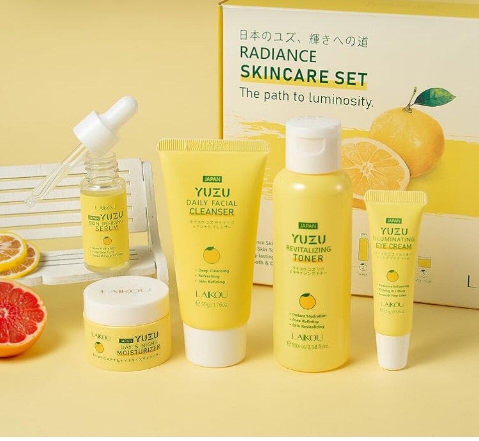 Découvrez la luminosité avec cet ensemble de soins. Comprend un nettoyant, tonique, crème pour les yeux, sérum et hydratant. Parfait pour une peau radieuse et éclatante.