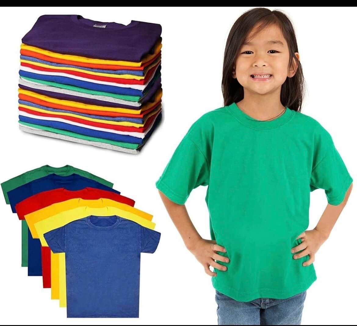 Lot de T-shirts colorés pour enfants, confortables et durables. Parfaits pour l'école ou le jeu quotidien. Taille et matière adaptées pour un port agréable.
