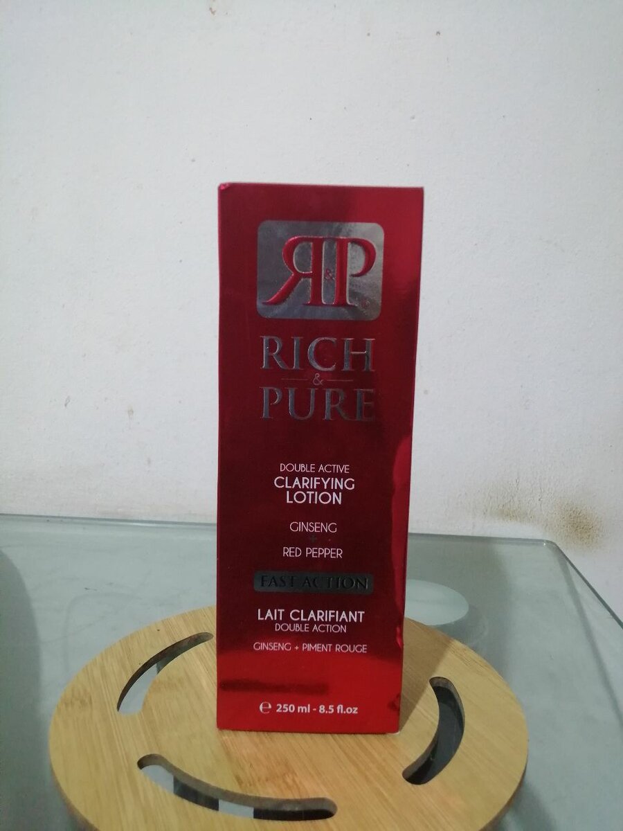 La lotion clarifiante RP enrichie en ginseng et poivre rouge. Idéale pour illuminer et revitaliser votre peau en douceur. Pour un teint éclatant et uniforme. Parfaite pour une utilisation quotidienne.
