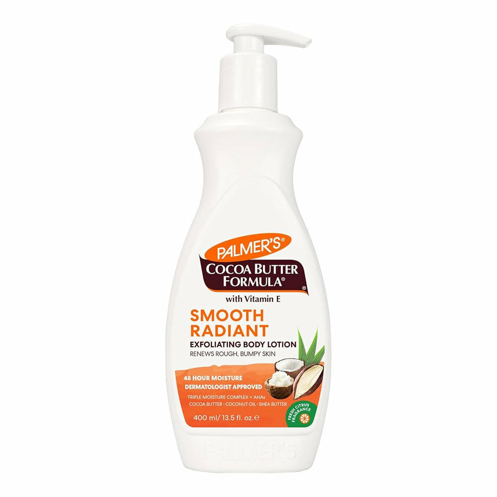 Lotion corporelle exfoliante de Palmer's, enrichie en vitamine E, hydrate et lisse la peau. Idéale pour peaux rugueuses. Parfait pour un teint éclatant et uniforme.