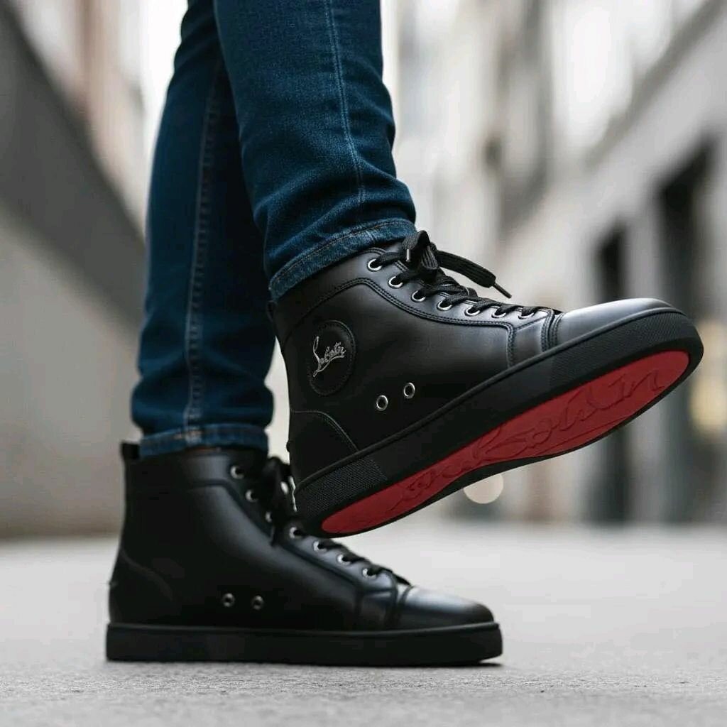 Découvrez nos sneakers montantes en cuir noir avec semelle extérieure rouge. Parfaites pour un look urbain chic, elles offrent confort et style tout en se mariant facilement avec vos tenues décontractées ou élégantes. Idéales pour toutes les saisons!