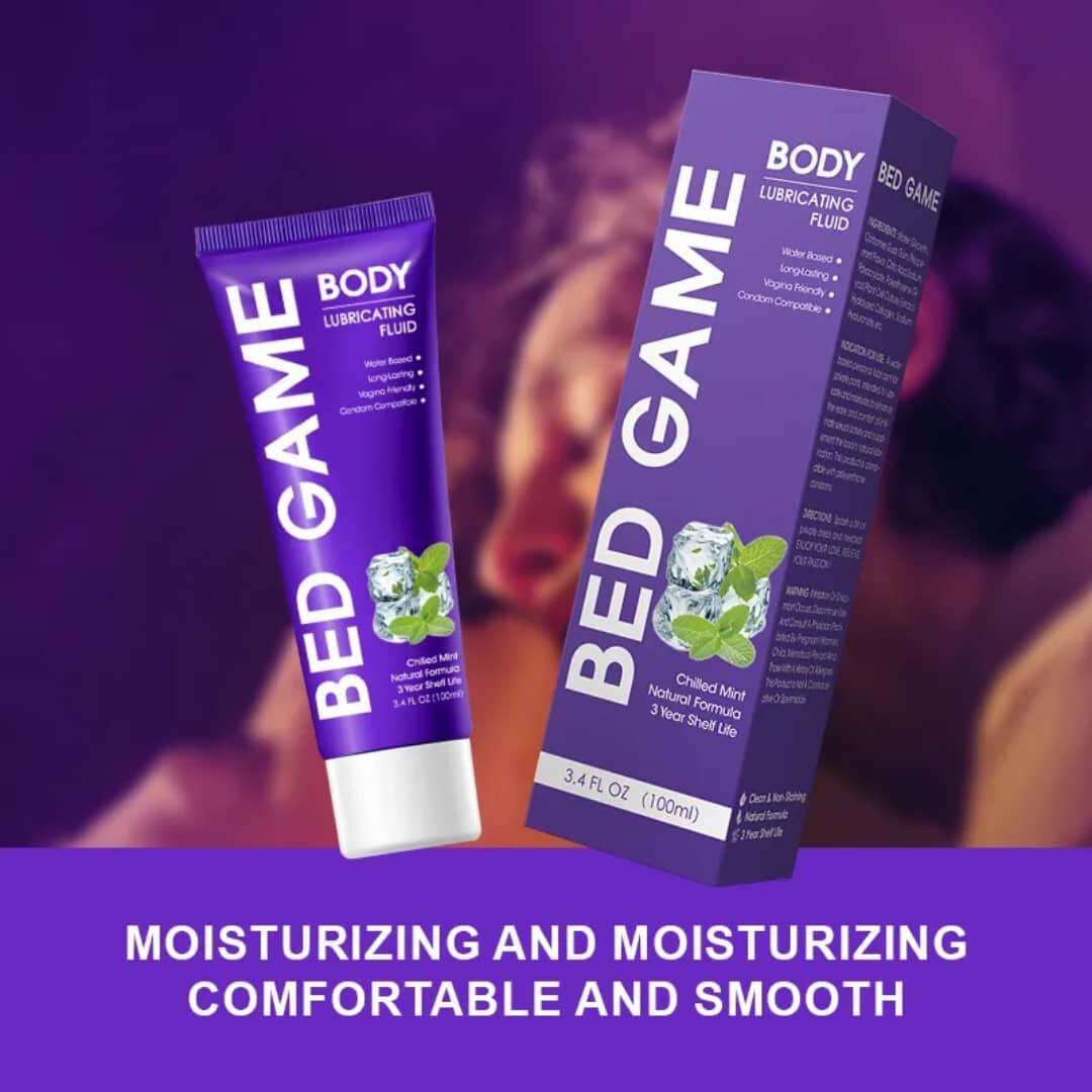 Découvrez le lubrifiant Bed Game avec sa texture très fluide. Fait à base d'eau, sans huile et mentholé Quantité : 100ml, 1 tube