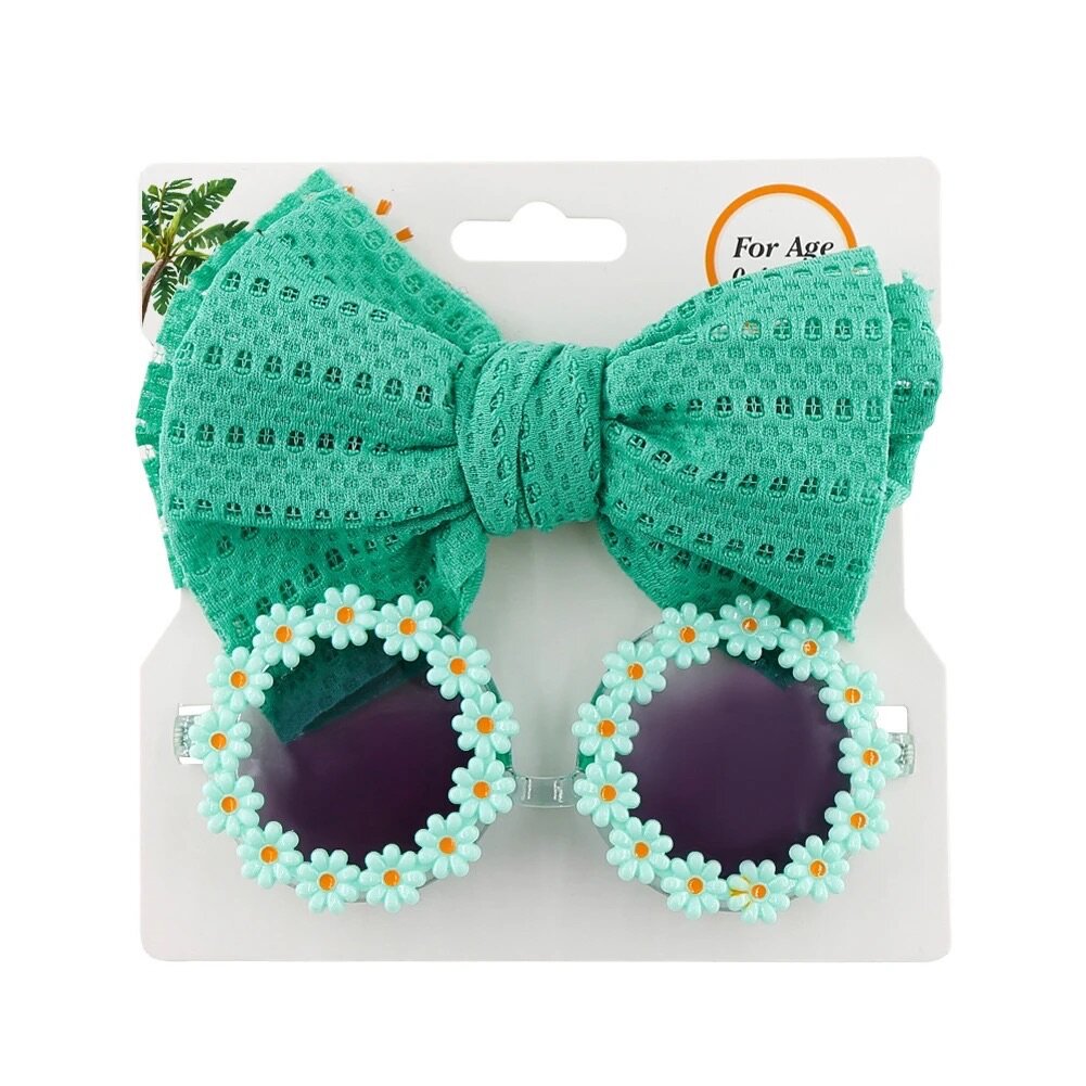 Jolie lunette pour petites filles en design de fleurs avec un bandeau assorti pour ajouter une touche spéciale à l´habillement de votre boudchou.