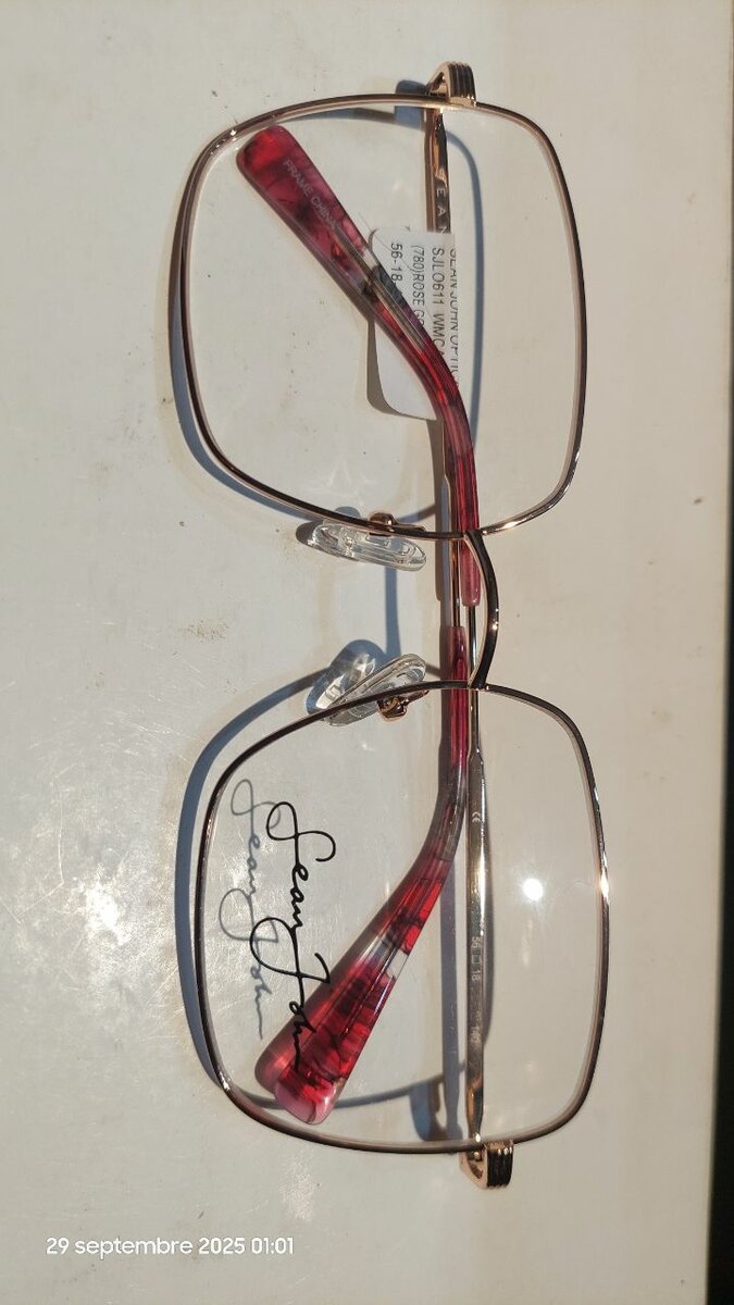 Optez pour ces élégantes lunettes de vue carrées avec monture dorée et branches rouges. Légères et confortables, elles ajoutent une touche de style raffiné à votre look quotidien. Parfaites pour une utilisation quotidienne.