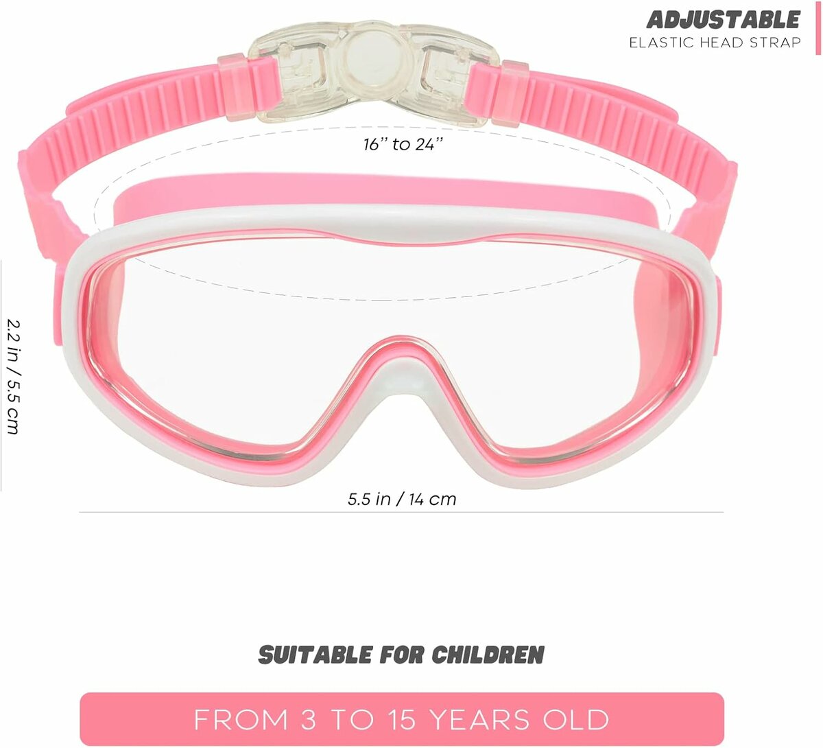 Lunettes de natation ajustables pour enfants, conçues pour les 3 à 15 ans. Confortables et sécurisées, idéales pour la piscine et la plage. Inclut des bouchons d'oreilles assortis pour une protection complète contre l'eau.