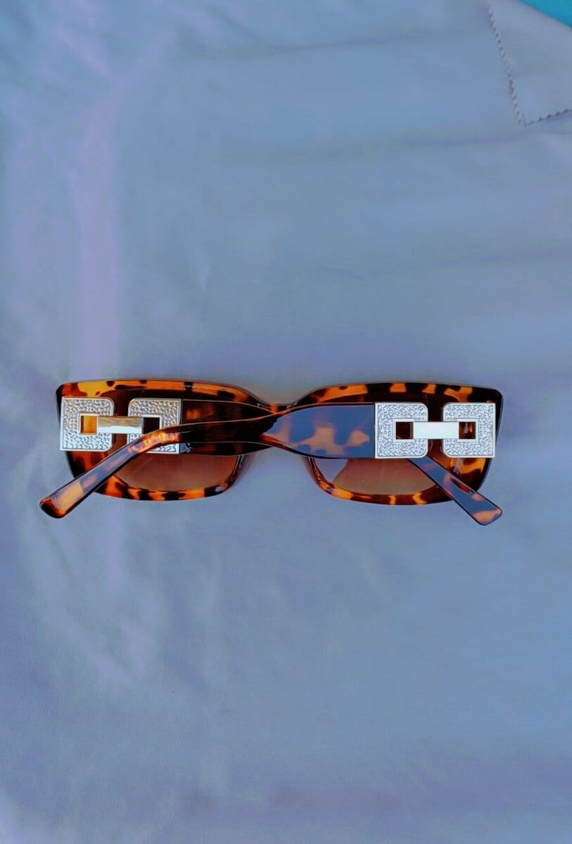 Découvrez ces lunettes de soleil uniques avec une monture tortue et des détails métalliques argentés. Parfaites pour ajouter une touche de style à votre tenue d'été.