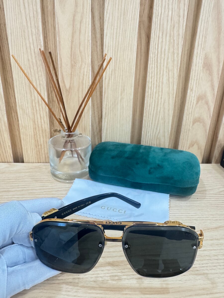 Découvrez l'élégance intemporelle des lunettes de soleil Gucci avec monture dorée et verres teintés. Parfaites pour une allure chic et sophistiquée, elles offrent une protection UV optimale. Livré avec étui velours et tissu de nettoyage. Idéal pour tous les amoureux de la mode.
