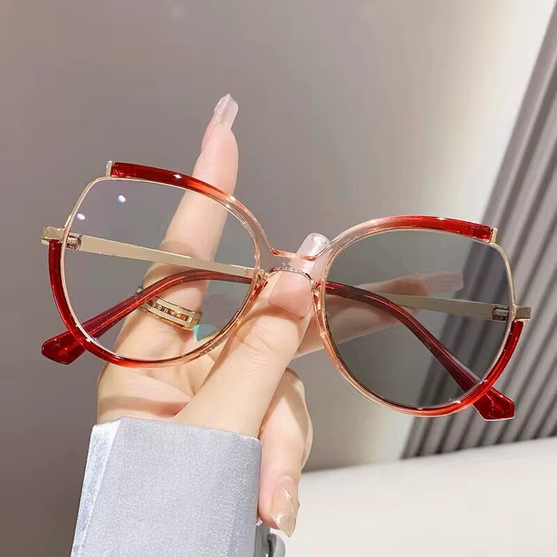Élégantes lunettes de soleil à monture métallique et verres teintés rouges. Parfaites pour les femmes qui cherchent un accessoire de mode tendance et stylé.