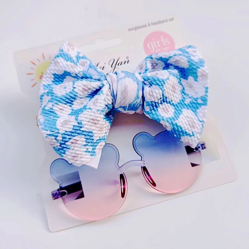 Mignon lunette en forme de nounours assorti dun bandeau pour nos jolies mignonne. Idéal pour les petites sorties à la plage ou en ville.