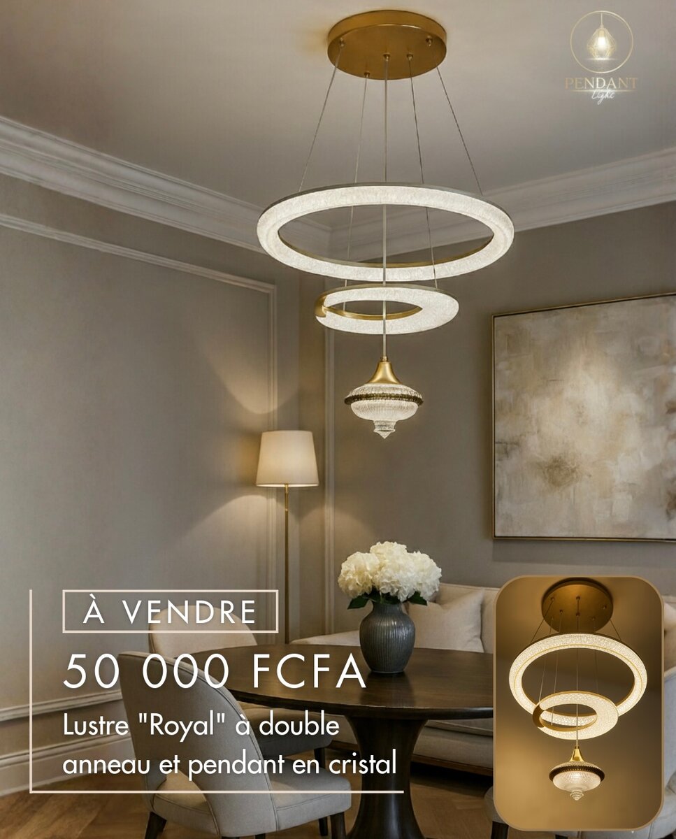 Éclairez votre intérieur avec élégance grâce au lustre "Royal". Double anneau et cristal chic, idéal pour les salons modernes. Illuminez vos soirées avec style et sophistication.