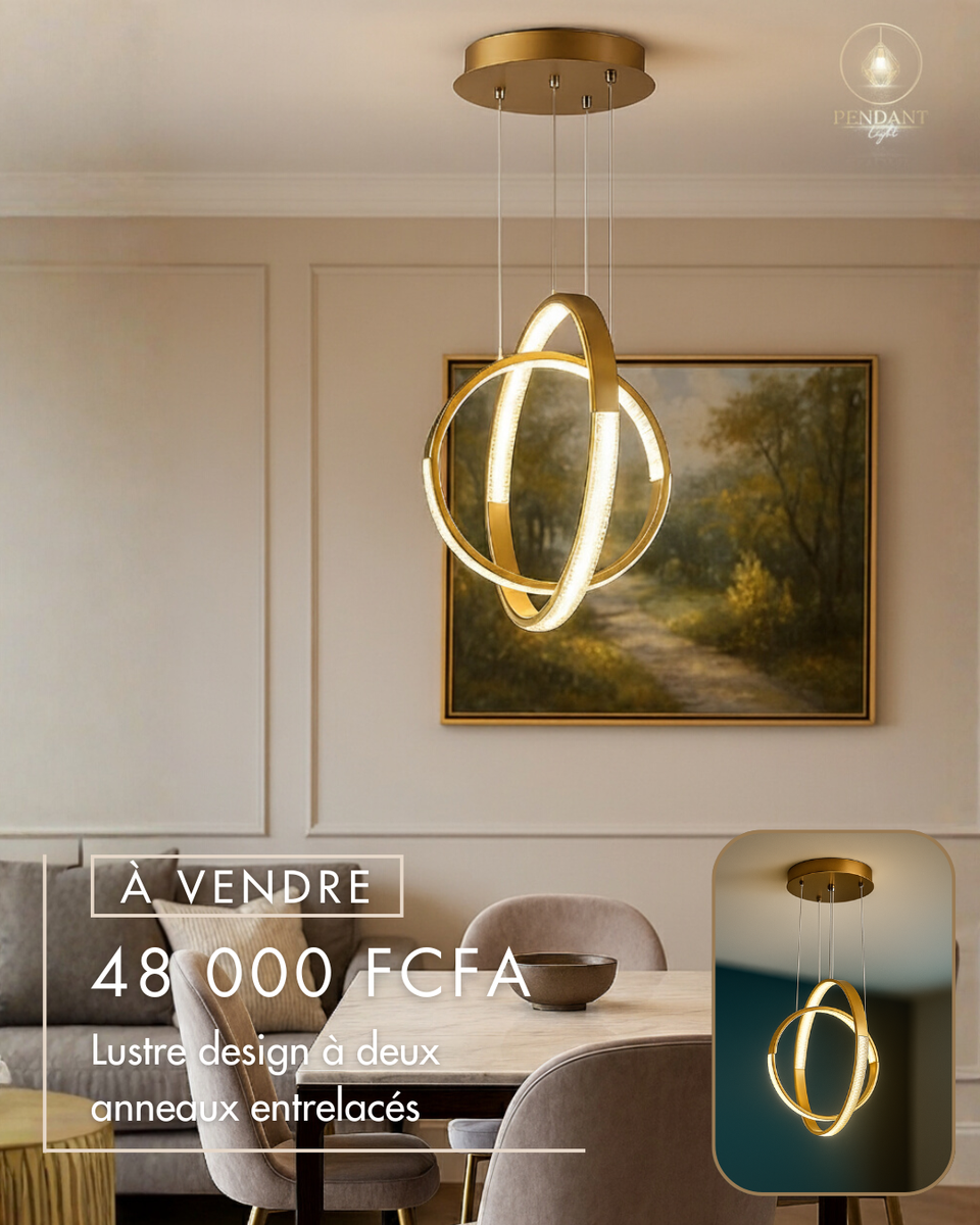 Ajoutez une touche d'élégance à votre intérieur avec ce lustre moderne à deux anneaux entrelacés. Idéal pour le salon ou la salle à manger, il crée une ambiance chaleureuse et accueillante.
