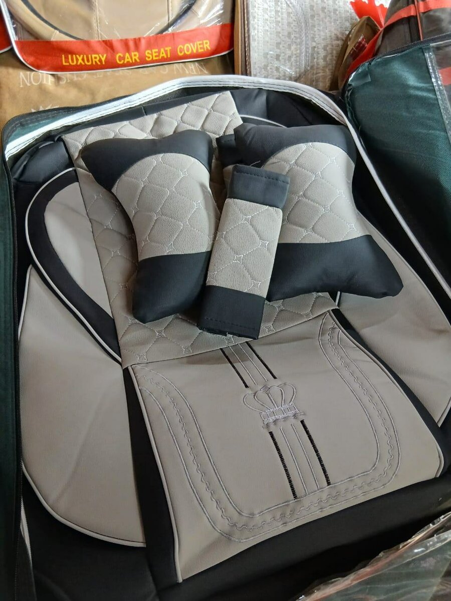 Upgrade your ride with these premium car seat covers and matching accessories. Designed for a stylish and comfortable drive, these covers are crafted with high-quality leather and feature an elegant design that enhances your car's interior. Ideal for anyone looking to protect their seats while adding a touch of luxury.