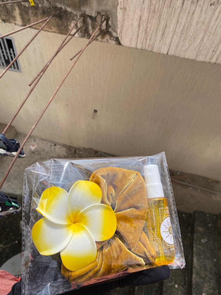 Indulge in relaxation with this luxurious spa gift set. Featuring a plush velvet headband, aromatic oil, and a decorative flower, it's perfect for a soothing spa experience at home. Ideal for self-care or as a thoughtful gift for loved ones.