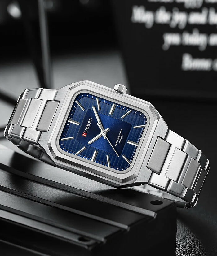 M:8457 curren Blue Dial Silver Stainless Steel Chain Analog