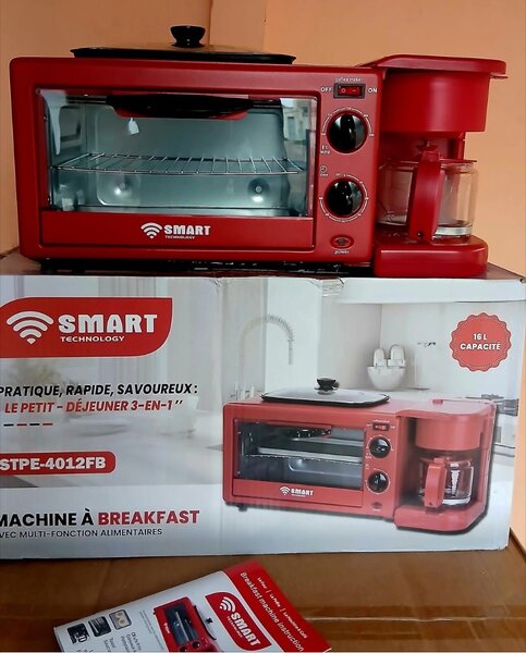 Optimisez vos matinées avec cette machine 3-en-1 compacte. Un four grille-pain, une cafetière et une plaque chauffante pour préparer un délicieux petit-déjeuner. Idéal pour les petites cuisines ou les studios.