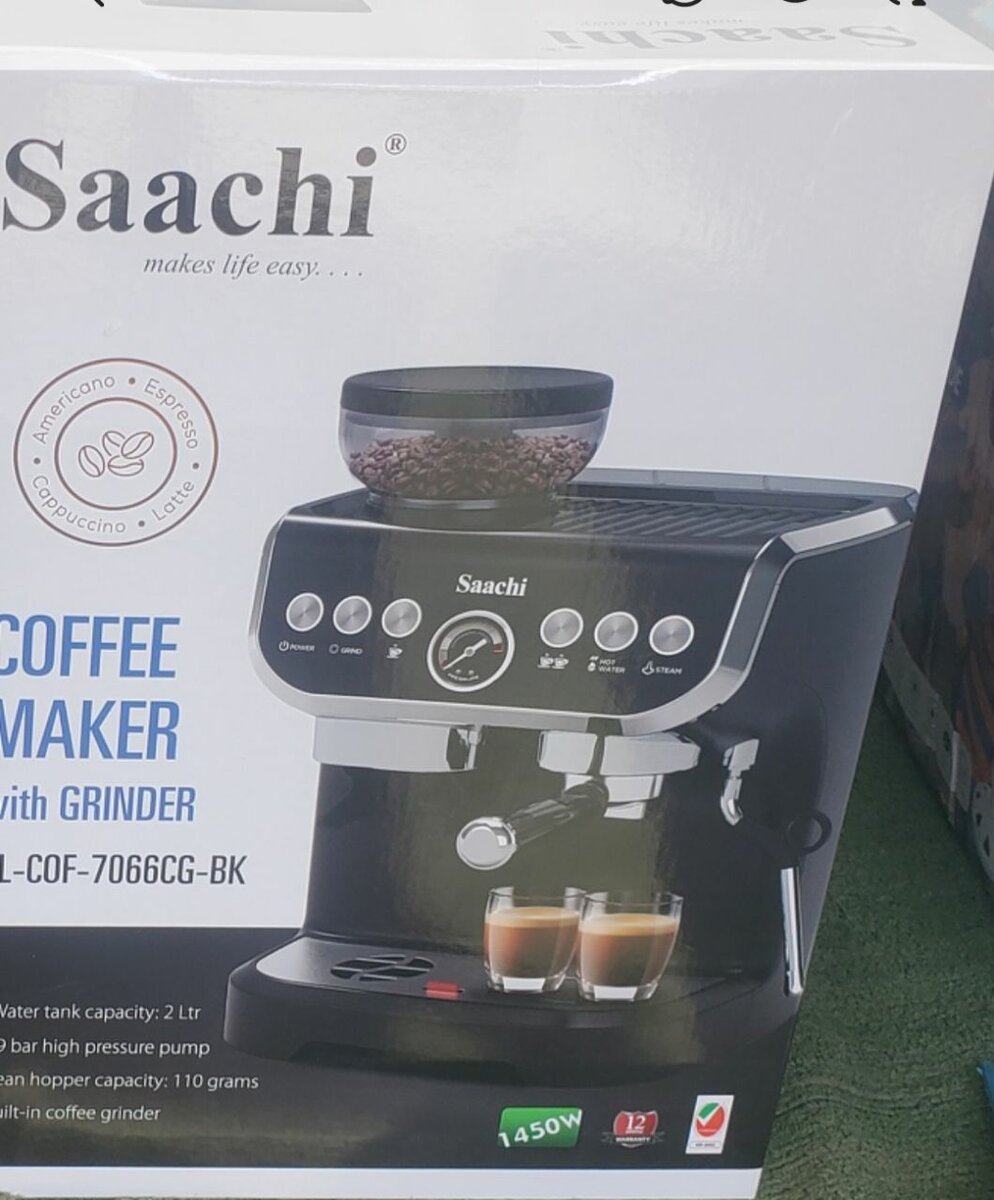 Découvrez la machine à café Saachi avec broyeur intégré. Préparez facilement des expressos riches grâce à son réservoir de 2 litres et broyeur puissant de 110g. Sa conception élégante et moderne s'intègre parfaitement dans toutes les cuisines. Idéale pour les amateurs de café qui recherchent qualité et performance au quotidien.