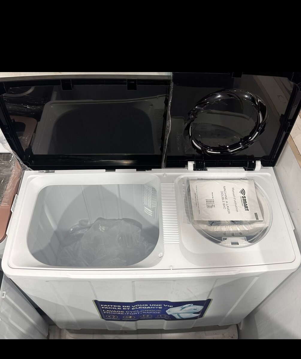 Découvrez la machine à laver moderne double bac, idéale pour un lavage efficient et séparé de vos vêtements. Parfait pour les familles, elle offre une grande capacité et une utilisation facile. Un choix excellent pour des lessives rapides et organisées.