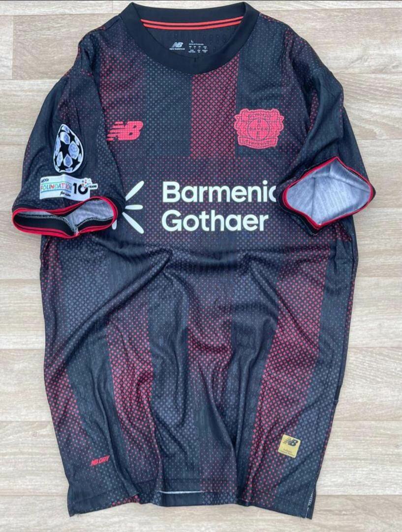 Maillot de football officiel du Bayer Leverkusen, édition spéciale Ligue des Champions. Idéal pour les matchs et le soutien de votre équipe favorite. Confortable et fabriqué avec des matériaux de haute qualité.