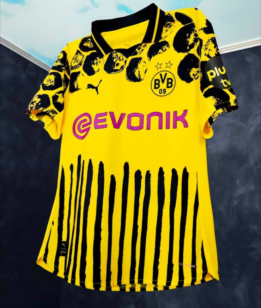 Maillot de football Borussia Dortmund pour les fans. Design accrocheur en jaune et noir avec logo officiel et détails sponsor. Parfait pour soutenir votre équipe préférée lors des matchs ou à porter au quotidien. Confortable et stylé, idéal pour les passionnés de football.