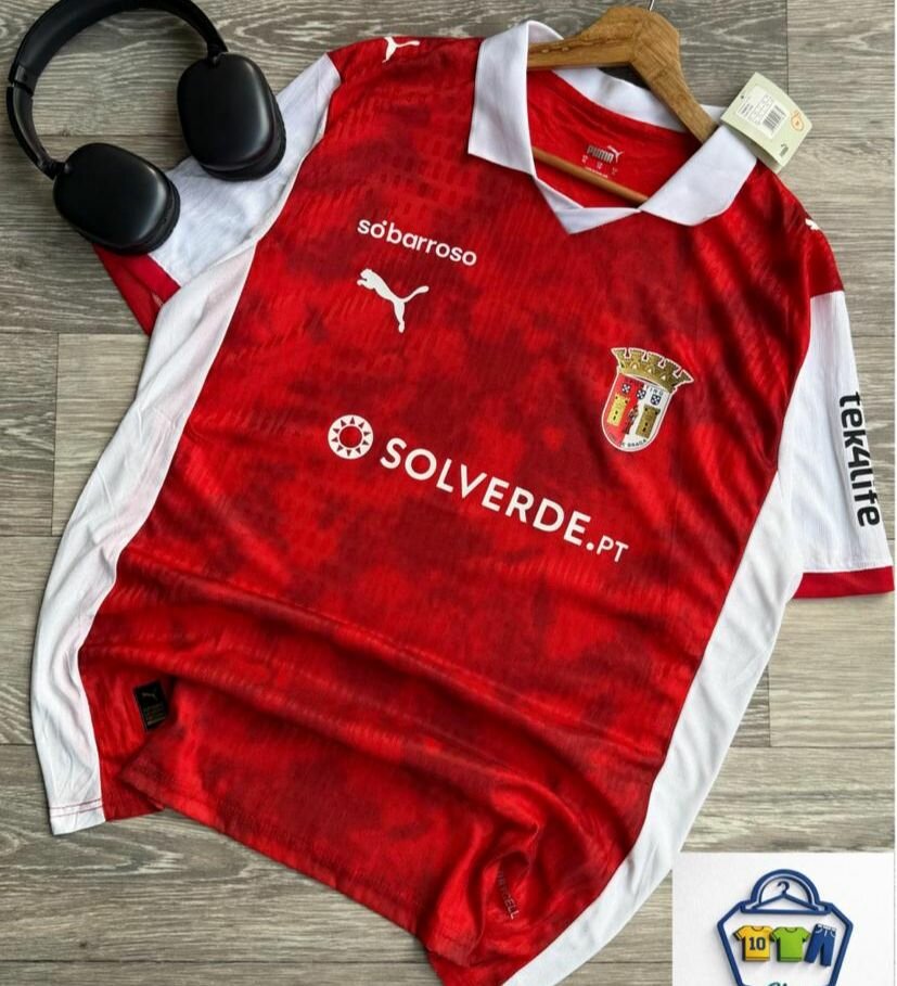 Découvrez ce maillot de football Puma rouge et blanc, parfait pour les fans et les joueurs. Fabriqué avec des matériaux de qualité, il offre confort et performance. Sponsorisé par SOLVERDE.PT, sobaroso et tekalite. Idéal pour les matchs et les entraînements.