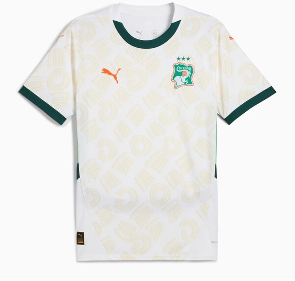 Maillot officiel Côte d'Ivoire par Puma, parfait pour les fans de football. Fabriqué avec des matériaux de haute qualité, idéal pour soutenir votre équipe favorite lors des matchs et pour porter au quotidien. Confortable et stylé, c'est le choix parfait pour tout supporter des Éléphants.