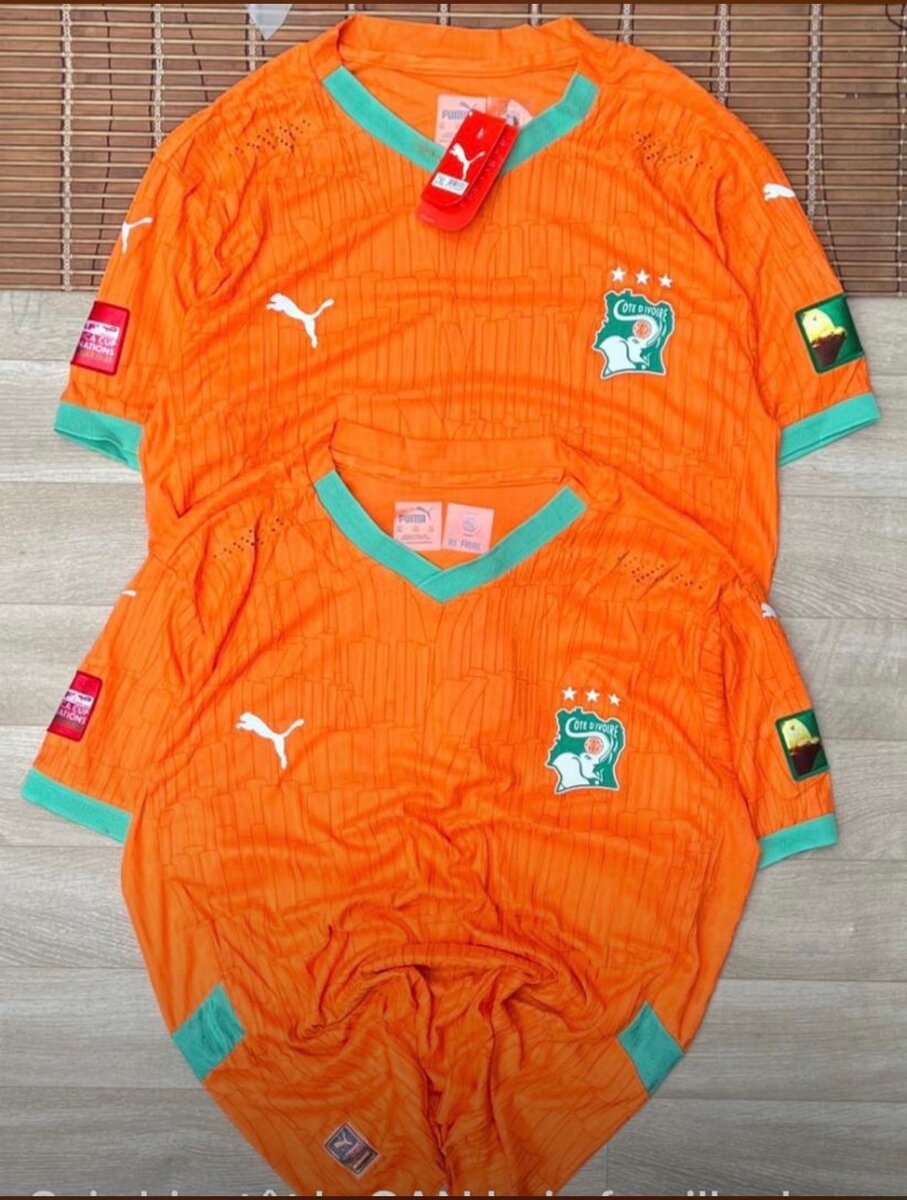 Maillot officiel de l'équipe de football de Côte d'Ivoire par Puma. Confortable et respirant, idéal pour les supporters passionnés. Design orange vif avec détails verts et écusson de l'équipe. Parfait pour les matchs et l'entraînement.
