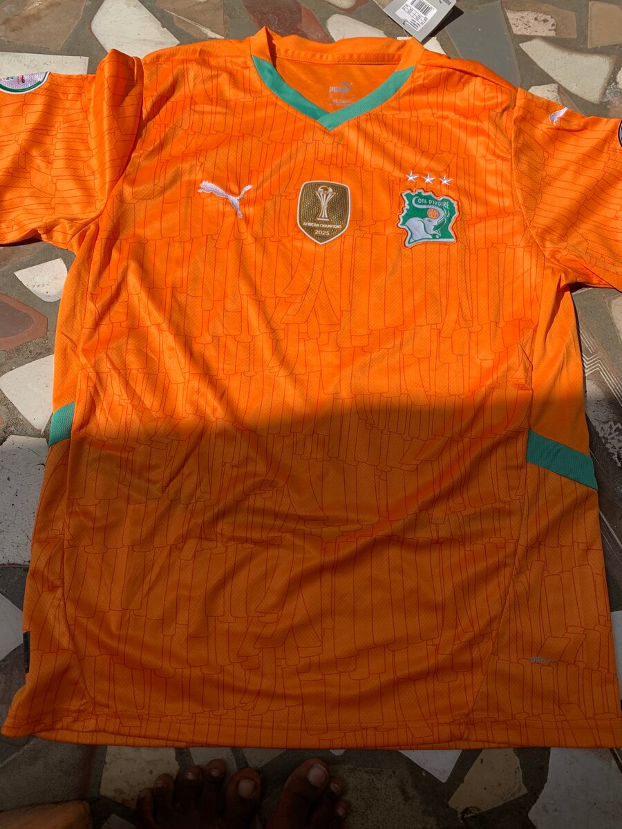 Maillot de football officiel de la Côte d'Ivoire en couleur orange vif. Idéal pour soutenir votre équipe préférée lors des matchs ou pour vos activités sportives. Fabriqué dans un matériau léger et respirant pour un confort optimal.