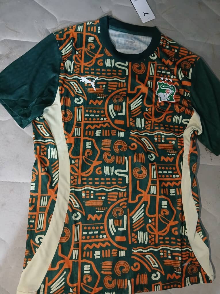 Maillot de football de l'équipe nationale de Côte d'Ivoire, idéal pour les supporters passionnés. Conçu pour le confort et la performance, avec des motifs vibrants symbolisant la culture ivoirienne.